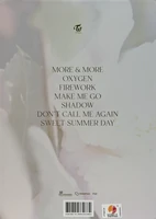 More & More is TWICE's 9th Mini Album, released June 1, 2020 โ and their first full nine-member comeback following Mina's return from her mental health hiatus. It comes in three versions (A, B, C), each containing a version-specific 88-page photobook, a MORE Postcard, a Coaster Card (1 of 9), a CD (1 of 9), and 5 photocards randomly drawn from 100 total โ an expanded pool from the 90-card sets of previous eras, worth noting for completionist collectors. First press copies also included "The Most Card" (1 per album) and a 10-card pre-order photocard set per version. The album features 7 tracks co-written by an unusually international team including MNEK, Zara Larsson, and Julia Michaels alongside J.Y. Park. The "More & More" MV was filmed in Jeju Island with a Garden of Eden concept, garnering 14.7 million YouTube views in 15 hours. Sales-wise, this was a landmark release: over 260,000 first-day Hanteo copies made it the highest first-day sales record for a Korean girl group at the time, and the album became TWICE's best-selling release up to that point with 563,000 Gaon-tracked shipments. The companion monograph (150p photobook + 9 member photocards) was released July 25, 2020, documenting both the "hippie"-styled jacket shoot and the dreamy, nature-set MV production in Jeju.